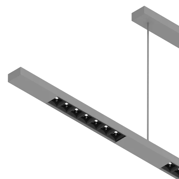Závěsné liniové svítidlo se základnou pro profesionální použití v kancelářích, retailu a restauracích. Kombinuje čistý design s precizní optikou zajišťující nízké oslnění a rovnoměrné osvětlení. Základna dodává svítidlu stabilitu a umožňuje elegantní zavěšení.